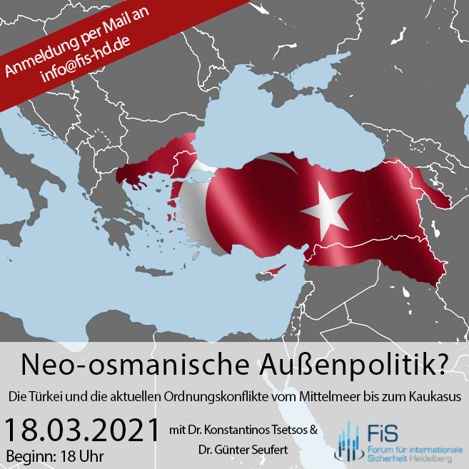 Unter dem Titel „Neo-Osmanische Außenpolitik? – Die Türkei und die aktuellen Ordnungskonflikte vom Mittelmeer bis zum Kaukasus“ fand am Donnerstag, den 18. März 2021, eine Onlineveranstaltung des “Forum für internationale Sicherheit Heidelberg” (FiS) statt. Zur Diskussion geladen waren Dr. Konstantinos Tsetsos, Politikwissenschaftler an der Universität der Bundeswehr München, und Weiterlesen